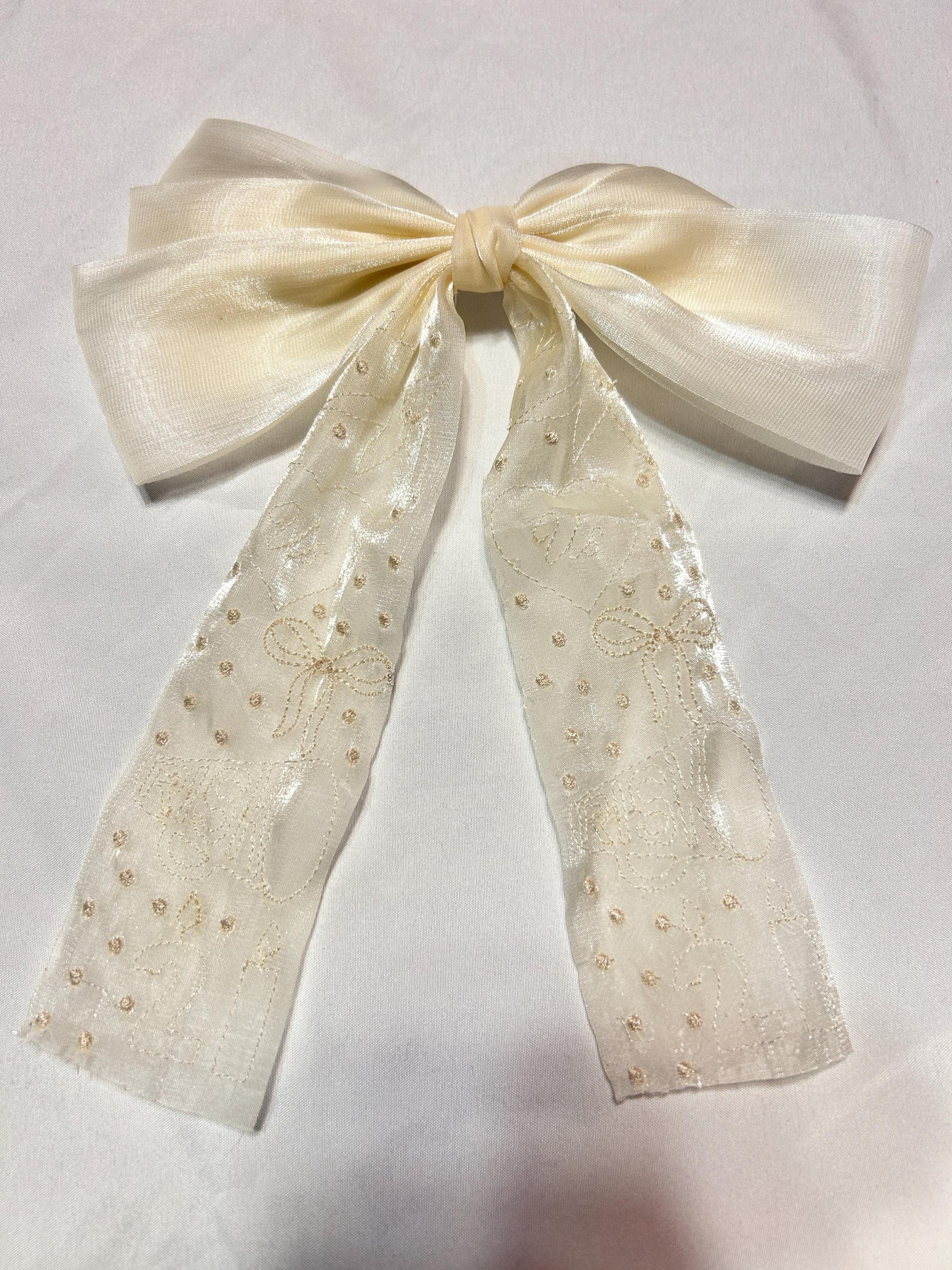 - These bows are embroidered by me, so please be aware that there might be a slight difference in the placement of the icons. The point of these bows is for them to be subtle, so the stitch type is a run stitch.