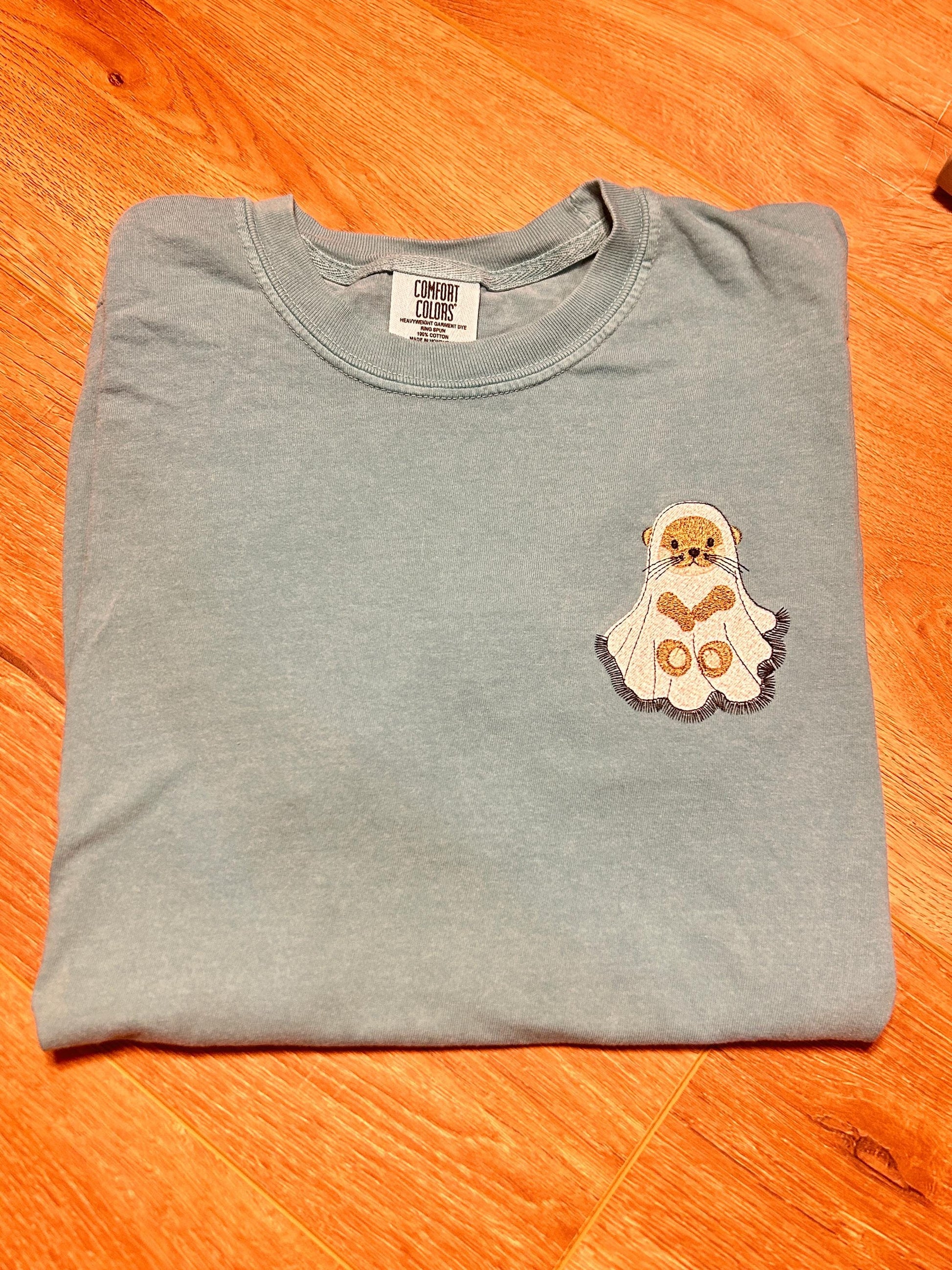Spooky Otter Halloween Embroidered Comfort Colors T-Shirt Sweatshirt, Ghost, Animals, Scary